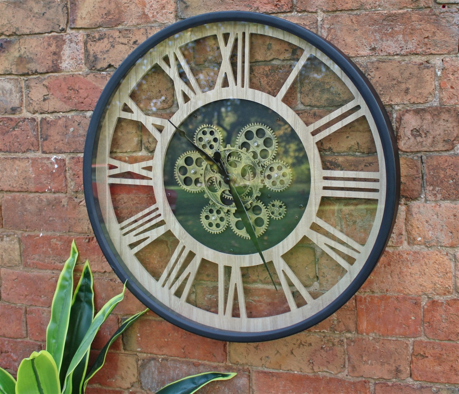 Black and Natural Moving Gear Clock, 57cm.