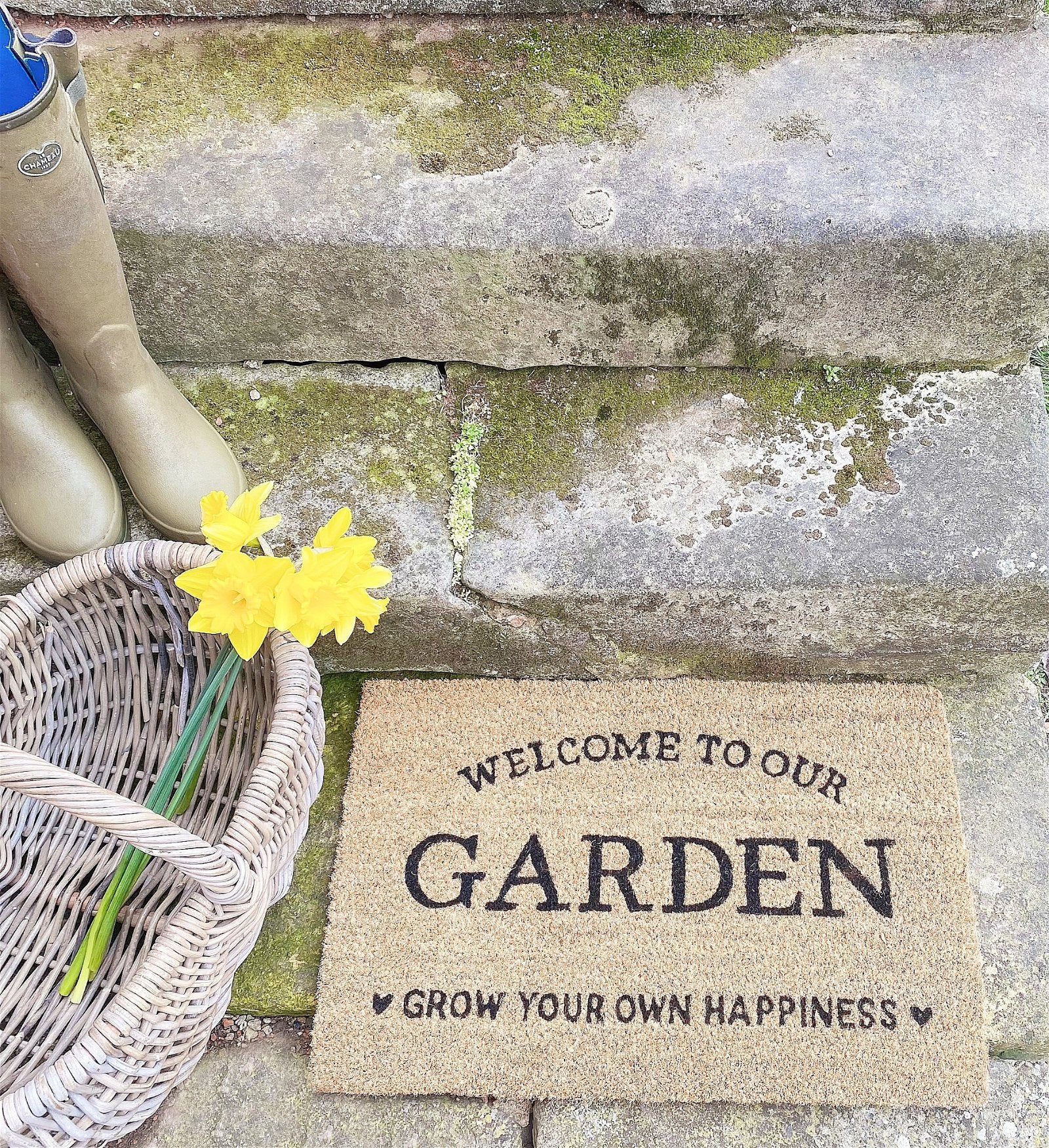 Add character to the entrance to your garden with the garden themed door mats. The door mat reads 'Welcome to our garden' 'Grow your own happiness'. Made from coir which is a strong, hard-wearing fibre which is ideal for doormats. The bottom of the mat is made from PVC which is flexible but tough and ensures that dirt is trapped in the mat itself. Measurements: D1.5 x H40 x W60cm