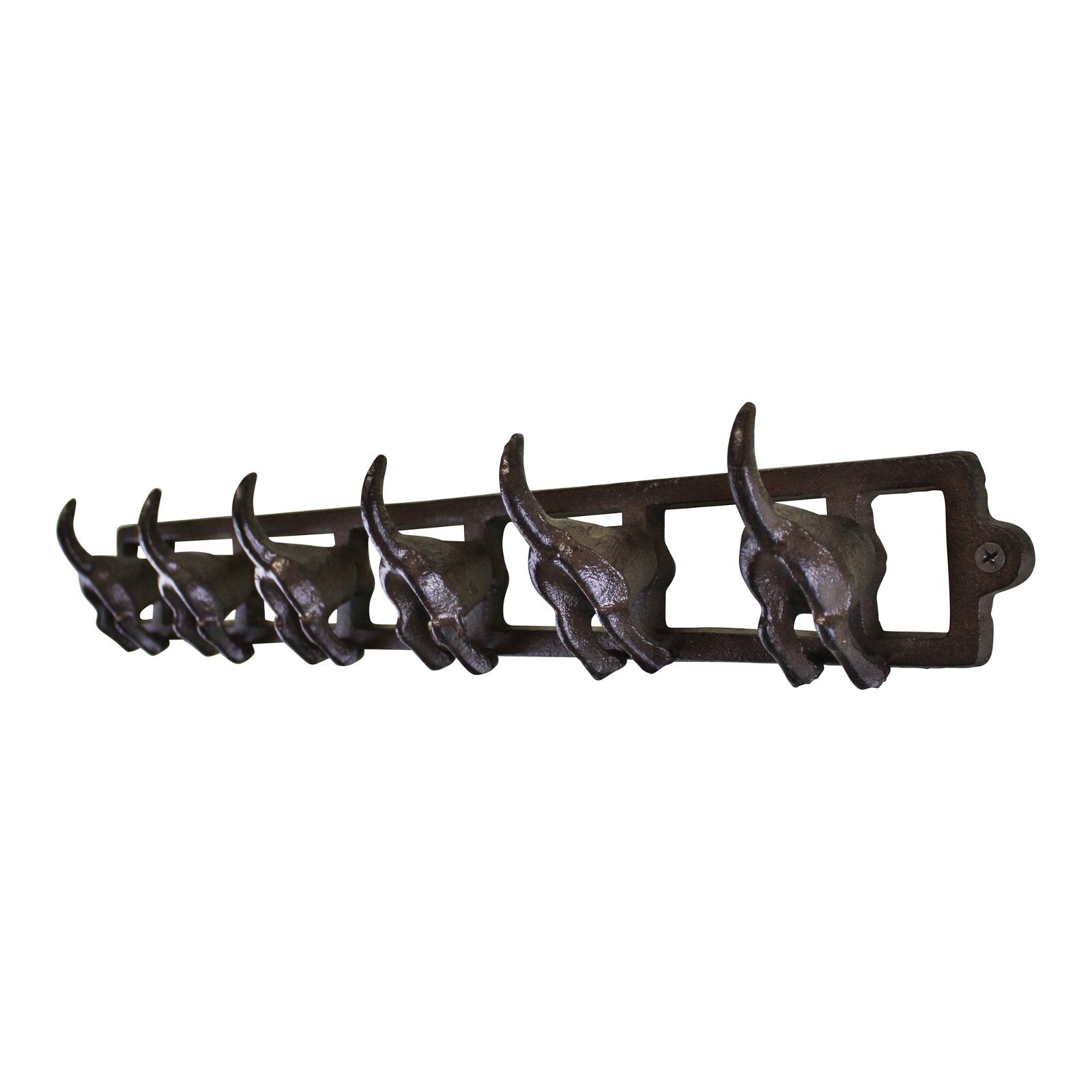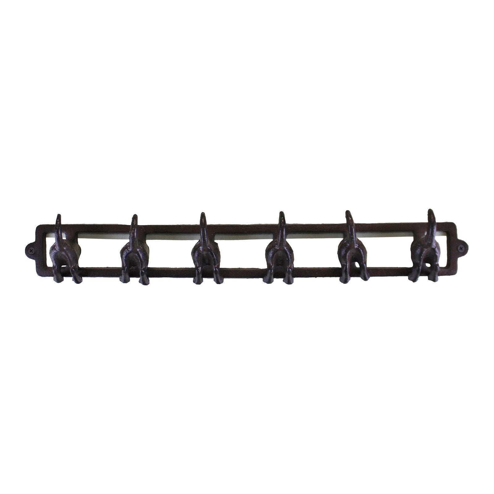 Rustic Cast Iron Wall Hooks, Dog Tail Design With 6 Hooks