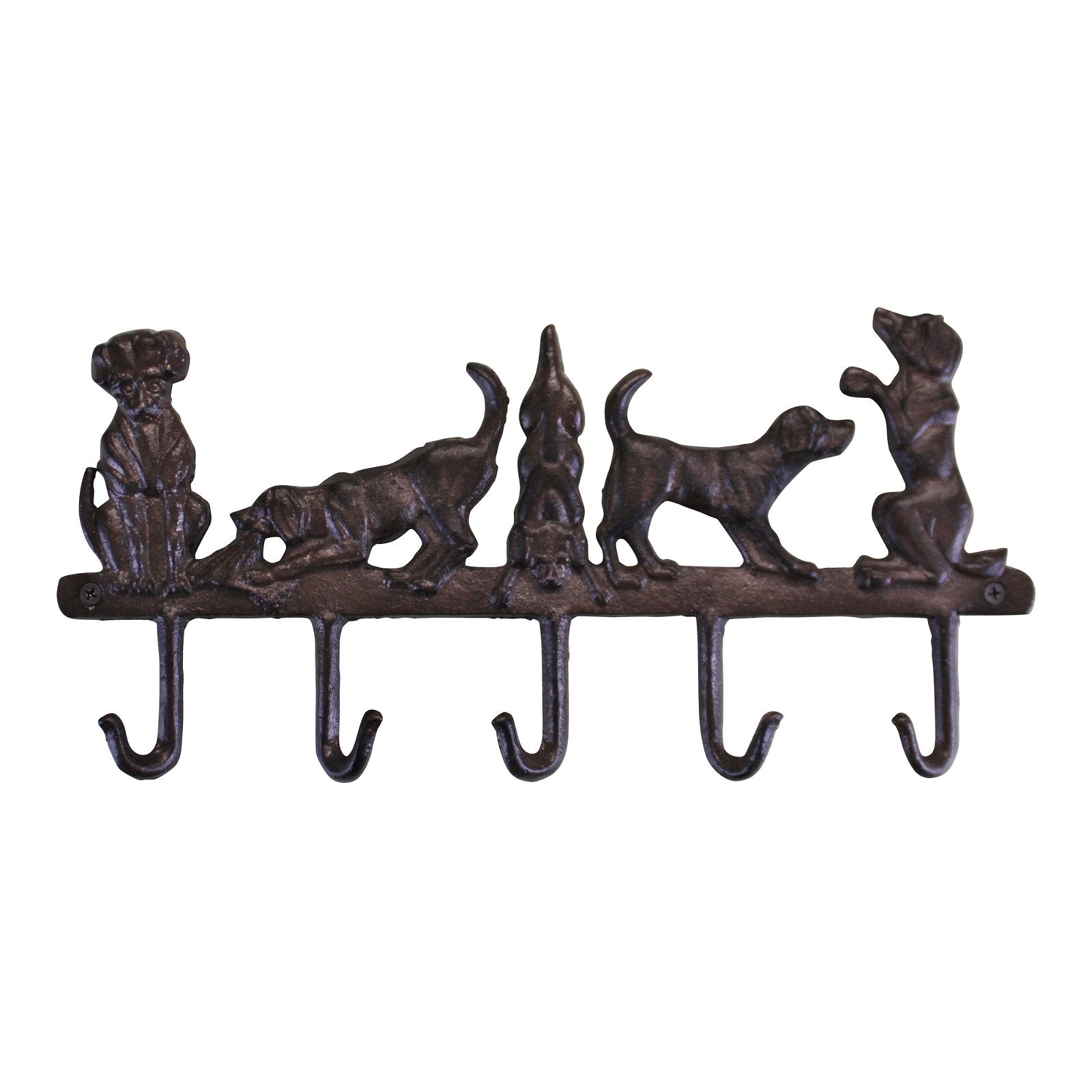 Rustic Cast Iron Wall Hooks, Playful Dog Design With 5 Hooks